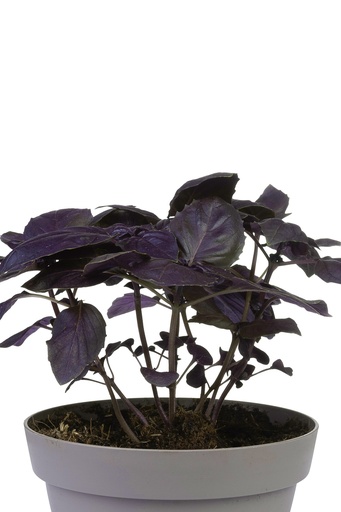Rode basilicum heeft diep paarse tot rode bladeren met een frisse, lichtzoete smaak die gerechten direct een kleurrijke toets geeft. De bloemen zijn eetbaar en voegen een elegante, natuurlijke decoratie toe aan zowel hartige als zoete gerechten. De plant trekt bijen en vlinders aan, wat bijdraagt aan een gezonde tuin.